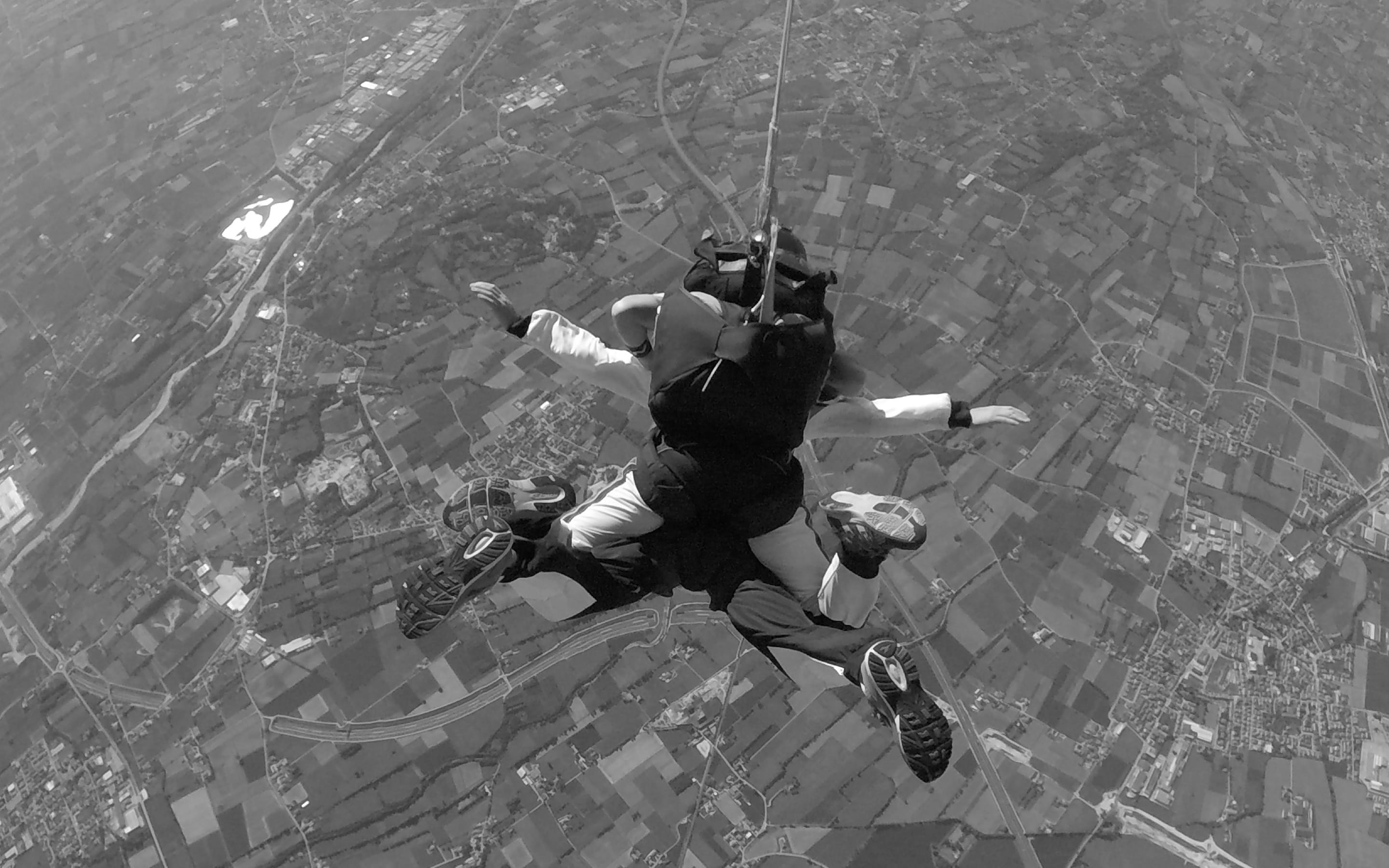 Per imparare la tecnica di uscita dall’aereo, te la facciamo provare a terra, nel nostro apposito simulatore: proverai il salto dal portellone prima di salire in quota, così in volo dovrai pensare solo a divertirti!